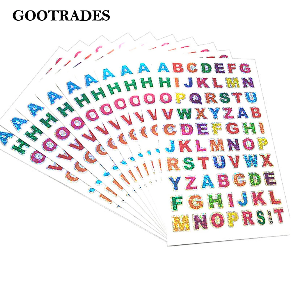 10 Sheets Glitter Letter Stickers Self Adhesive Alphabet Stickers For Scrapbooking Or Embellishment Alphabet Letters Name Card Stationery Sticker Aliexpress